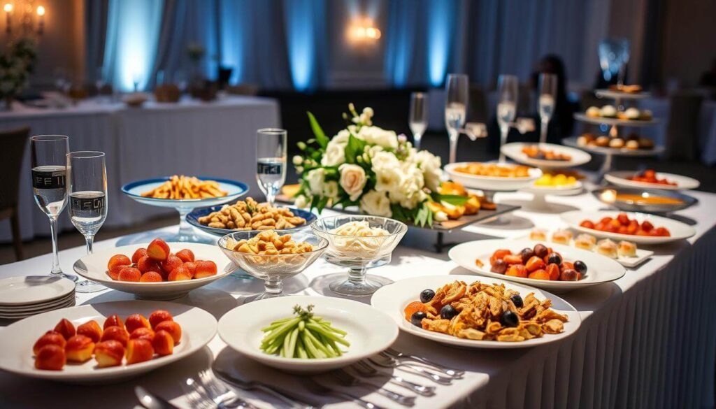 Buffets simplificados, como mesas únicas ou food trucks, oferecem uma excelente alternativa econômica, mantendo a diversidade e a qualidade dos alimentos.